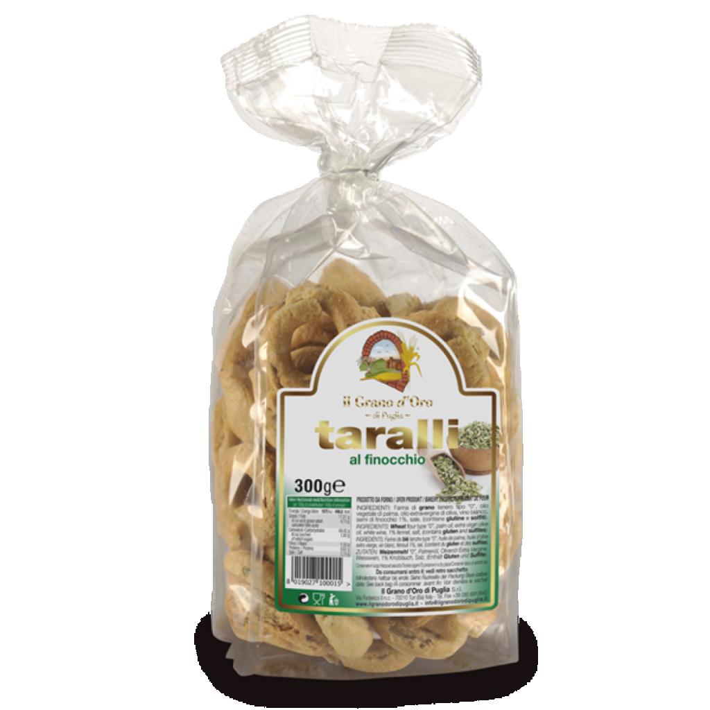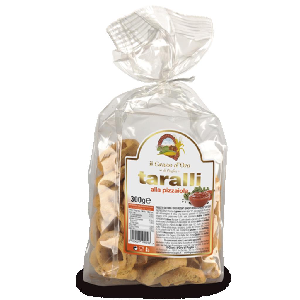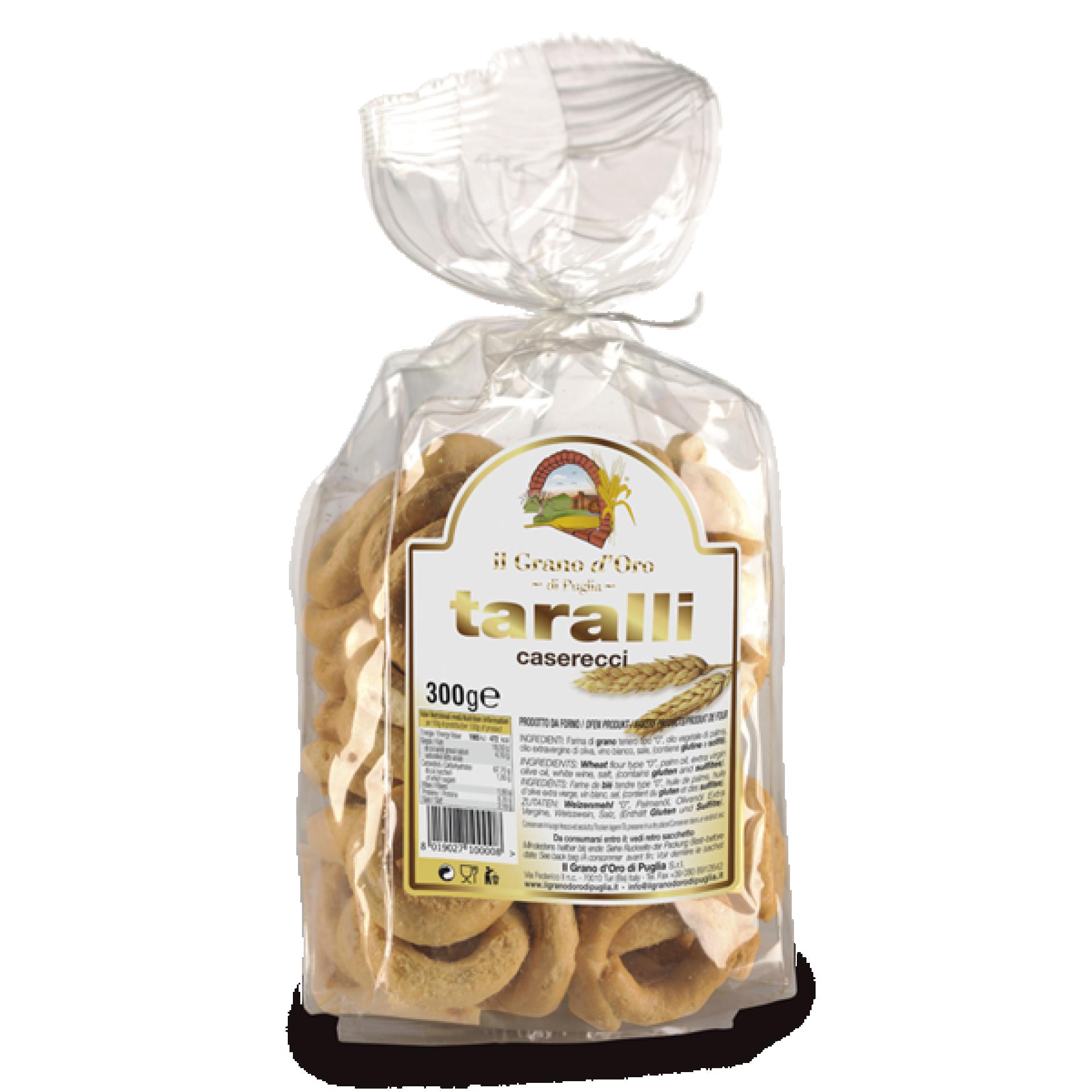 Véritables emblèmes du Sud de l’Italie, les Taralli Il Grano d’Oro di Puglia incarnent la tradition et la convivialité des Pouilles. Élaborés à partir d’ingrédients simples et naturels — farine de blé, huile d’olive extra vierge, vin blanc et œufs — ces petits anneaux croustillants sont le fruit d’un savoir-faire ancestral transmis depuis le XVe siècle.