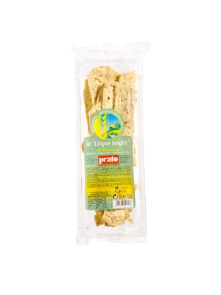 Élaborées à partir d’ingrédients simples et naturels — farine de blé, levure de bière et huile d’olive — les Lingues se déclinent en quatre versions savoureuses : à l’huile d’olive, au romarin, au sésame et aux olives vertes (150 g chacune). Leur croquant délicat en fait un accompagnement idéal pour les antipasti, les fromages italiens ou les charcuteries fines.